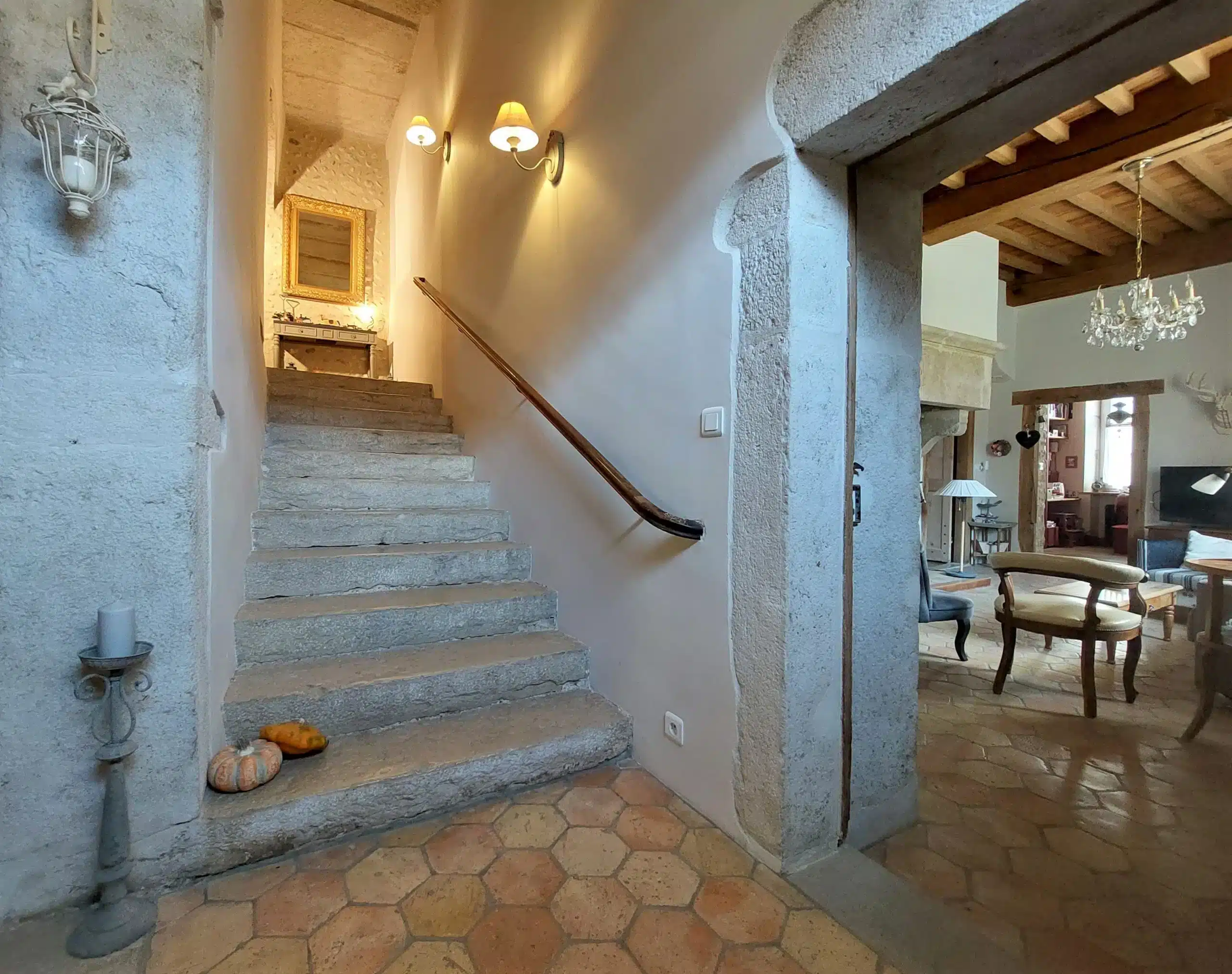 Les galets jointoyés à la chaux, les plafonds à la française, les tommettes du 17ème siècle et l’escalier en pierres de tailles ont retrouvé toute leur splendeur.
